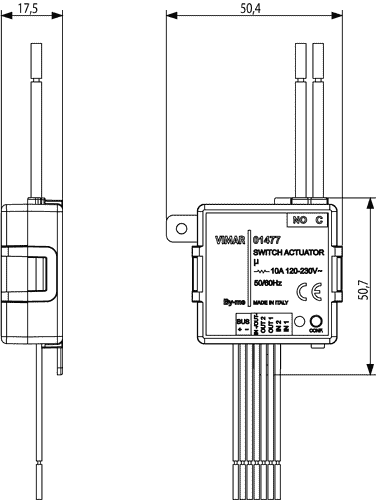 01477 Модуль Vimar Arke с 2 цифровыми входами, программируемыми для контактов, не имеющих потенциала, 1 релейный выход для управления с НР контактом для управления освещением 10 A 120-230 В~ 50/60 Гц