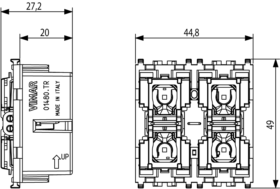 01480.TR Четыре кнопки Vimar Arke управление и функции 2 модуля в тропическом исполнении