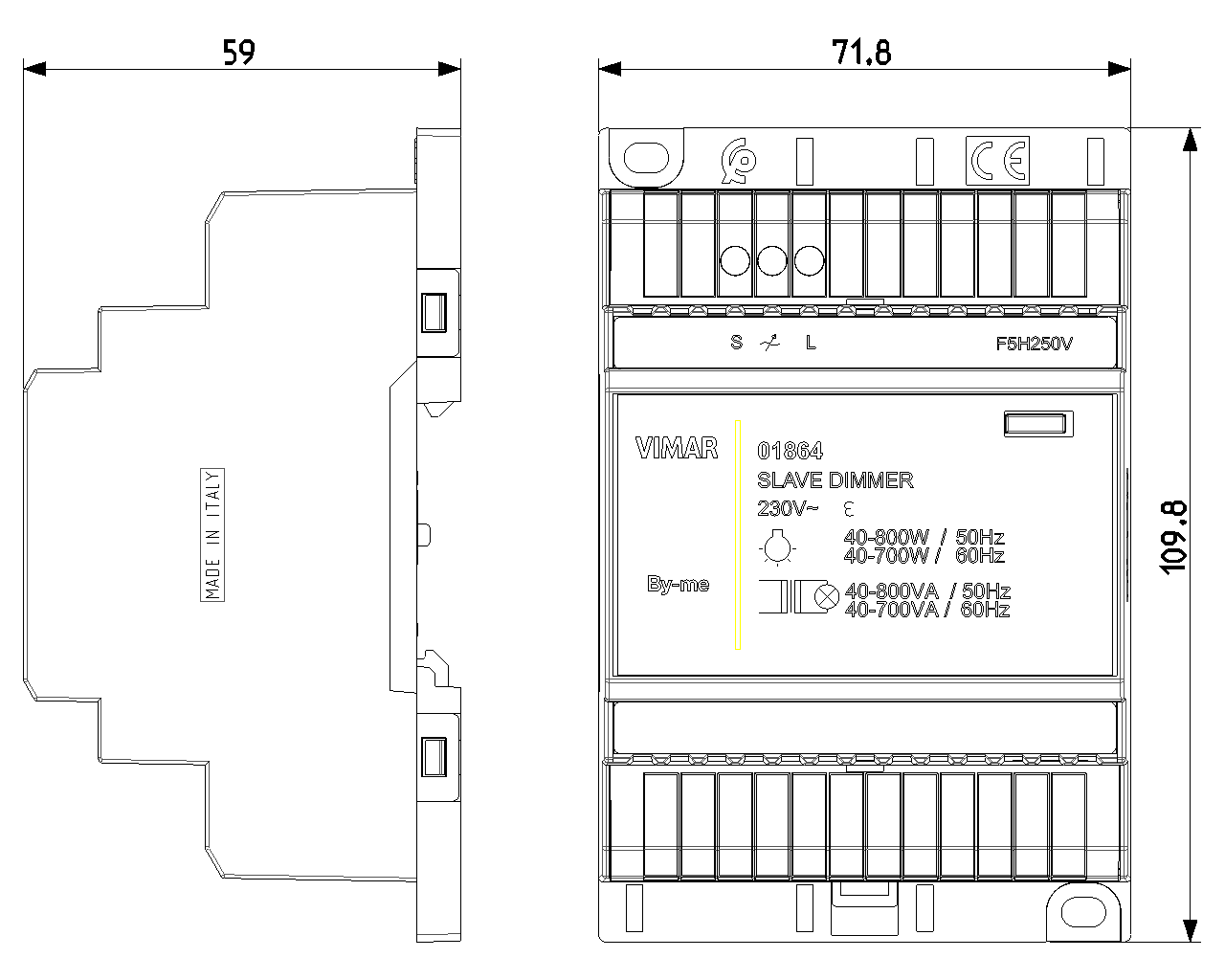 Регулятор SLAVE, 40-800 Вт/ВА 50 Гц, 40-700 Вт/ВА 60 Гц, 230 В~, MOSFET+TRIAC,