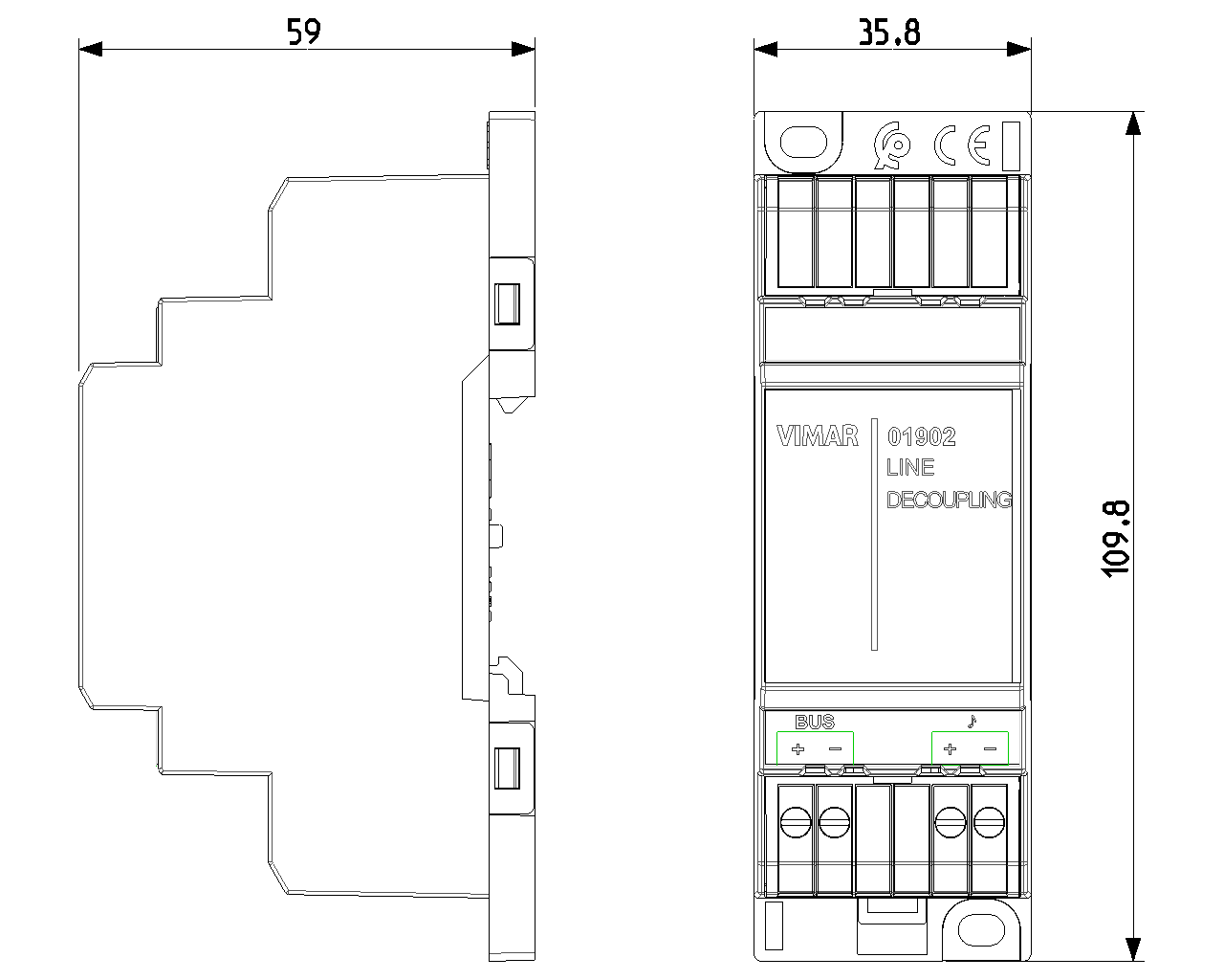 01902 Расцепитель линии шина/диффузор звука Vimar Arke для блока питания By-me, встроенный ограничитель линии, 2 модуля