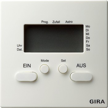 Серый электронный таймер Gira предлагает удобное решение для автоматического управления электрооборудованием. Оснащен четким ЖК-дисплеем и простой системой программирования, что делает его использование максимально удобным.
