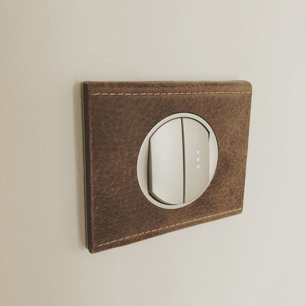 069402 Рамка Celiane Кожа/Текстиль Кожа коричневая 2-постовая Legrand