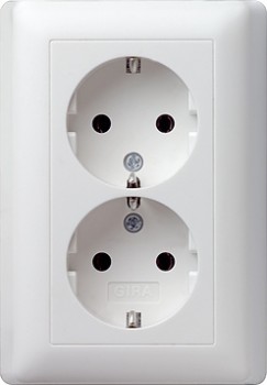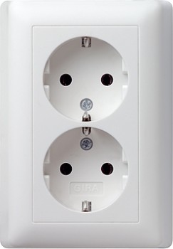 078003 Розетка двойная с заземляющими контактами в комплекте с рамкой белый глянец Gira