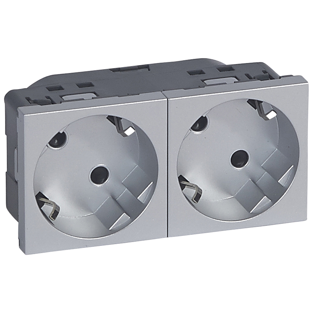 079282 Mosaic Розетка двойная 2Х2к+З немецкий стандарт 45° алюминий Legrand