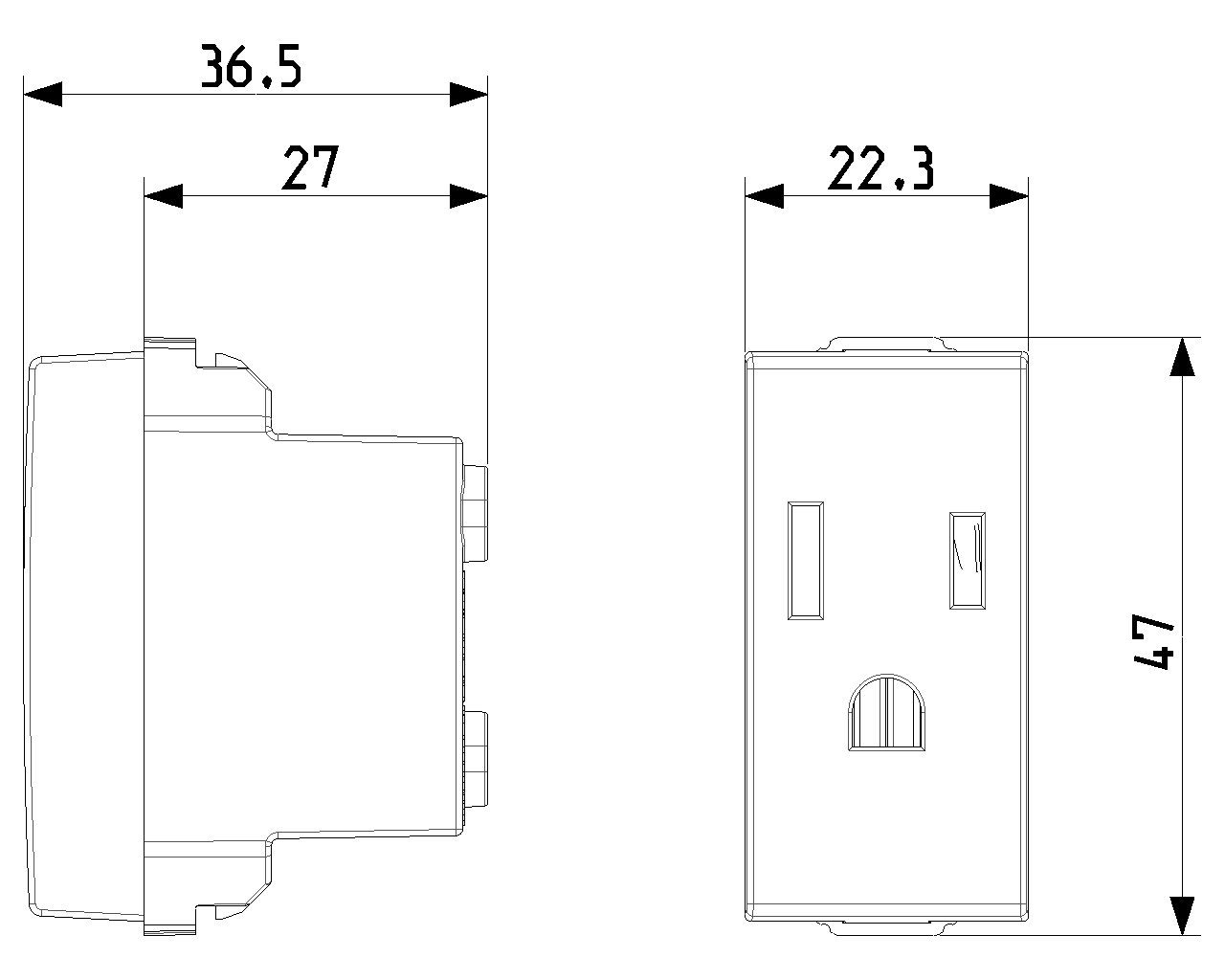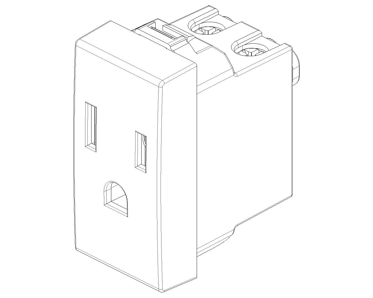 Матово-карбоновая розетка швейцарско-американского стандарта с защитными шторками.