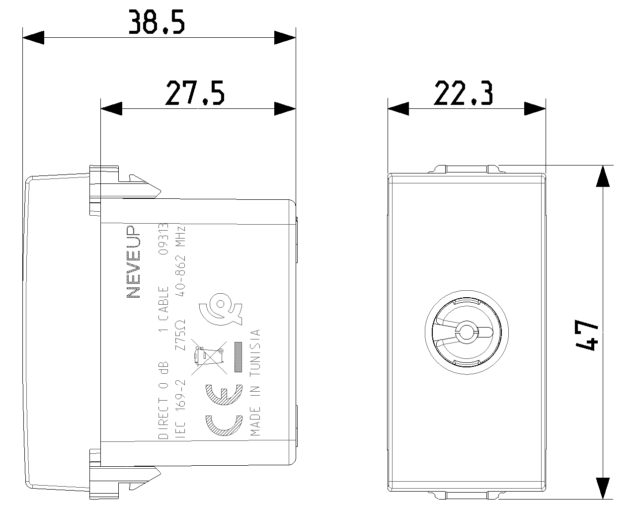 09313.CM Розетка TV IEC концевая, карбон матовый NEVE UP Vimar