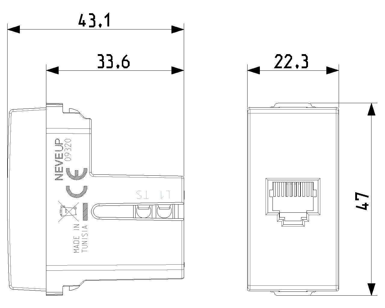 09320 изготавливается брендом Vimar, относящаяся к коллекции NEVE UP.