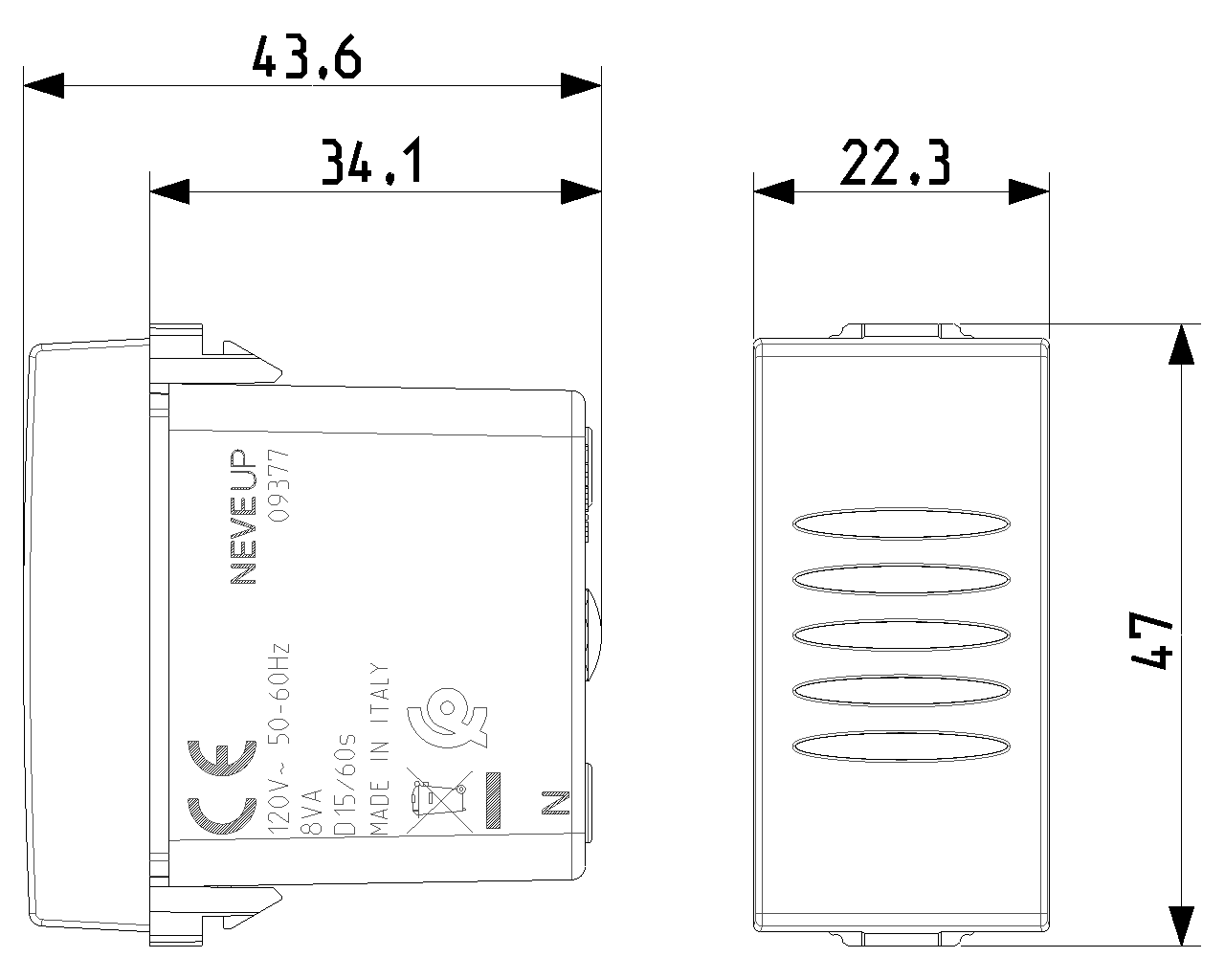 09377.CM Зуммер 120В 50-60Гц, карбон матовый NEVE UP Vimar