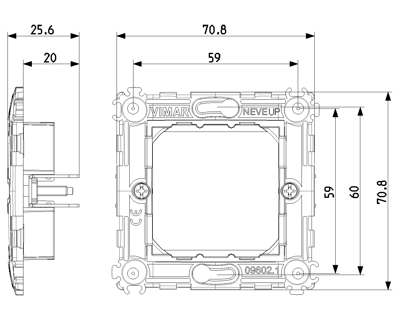 09602 Суппорт для 2 модулей 71мм с защелками NEVE UP Vimar
