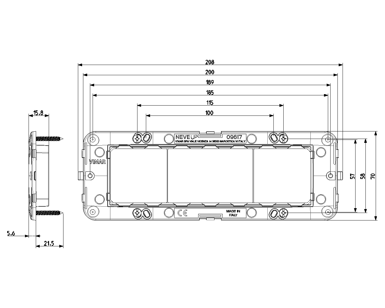 09617 изготавливается брендом Vimar и принадлежит коллекции NEVE UP.
