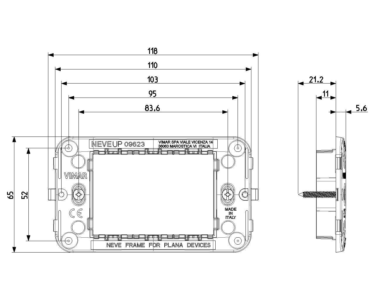 09623 производится брендом Vimar, которая относится к коллекции NEVE UP.