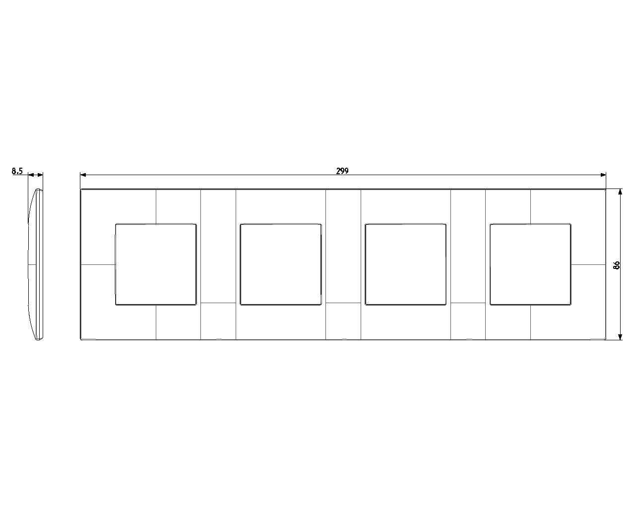 09668.14 Накладка Neve up на 8 модулей (2+2+2+2), карбон матовый Vimar