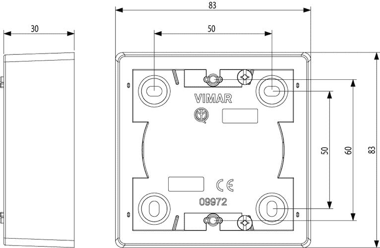 09972.01 изготавливается брендом Vimar и принадлежит коллекции Arke Round. Габариты: длина 83 мм, ширина 83 мм.
