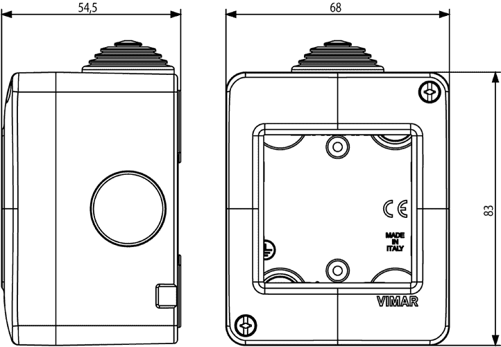 14802 – это продукция бренда Vimar и принадлежит коллекции Arke Round. Габаритные размеры: длина 83 мм, высота 54 мм, ширина 68 мм.