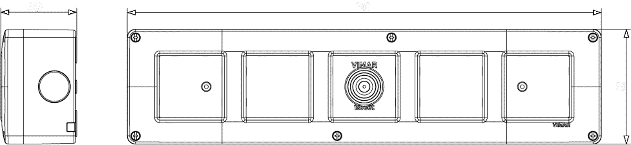 14815 производится брендом Vimar, относящаяся к коллекции Arke Round. Габариты: длина 340 мм, высота 54 мм, ширина 83 мм.