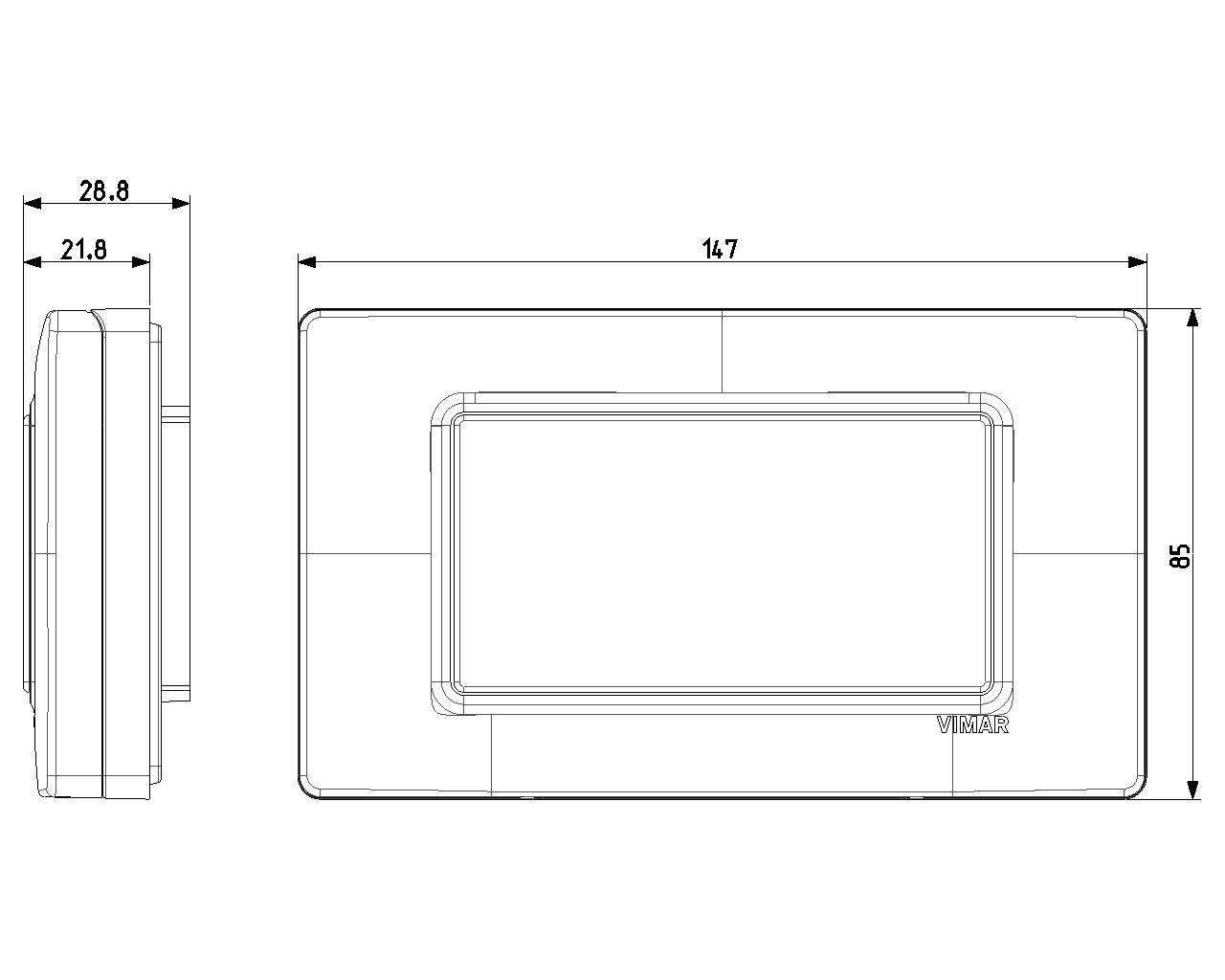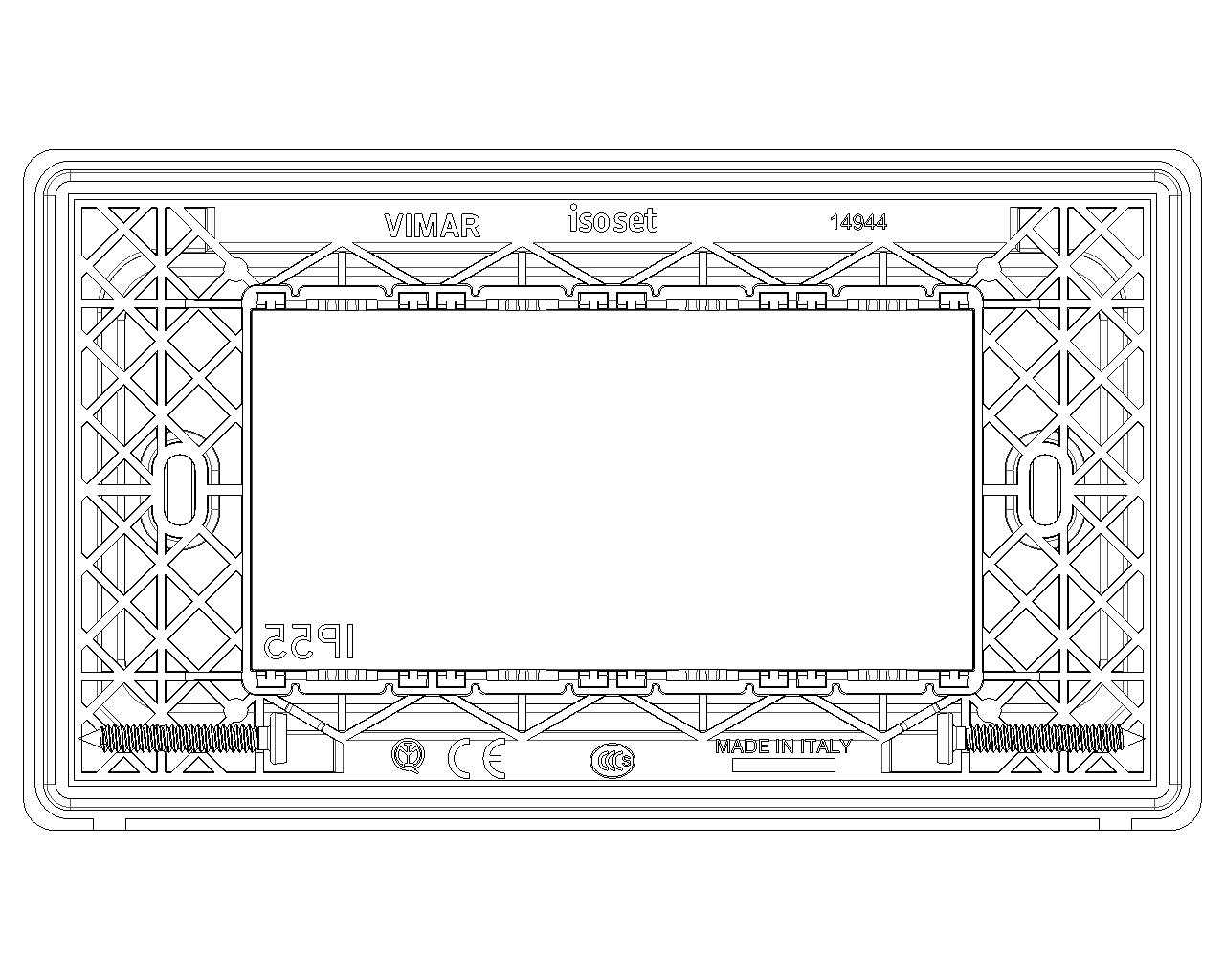 14944 изготавливается брендом Vimar и принадлежит коллекции Arke Round. Габаритные размеры: длина 147 мм, высота 22 мм, ширина 85 мм.