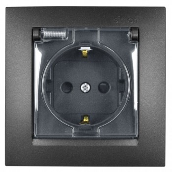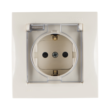 1590450-031 Розетка с заземлением Schuko со шторками, с крышкой, IP44, 16А 250В, винтовой зажим, слоновая кость Simon 15