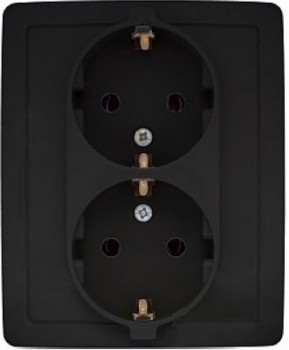 1590451-038 Розетка двойная с заземлением Schuko с защитными шторками, винтовой зажим, 16А 250В, графит Simon 15