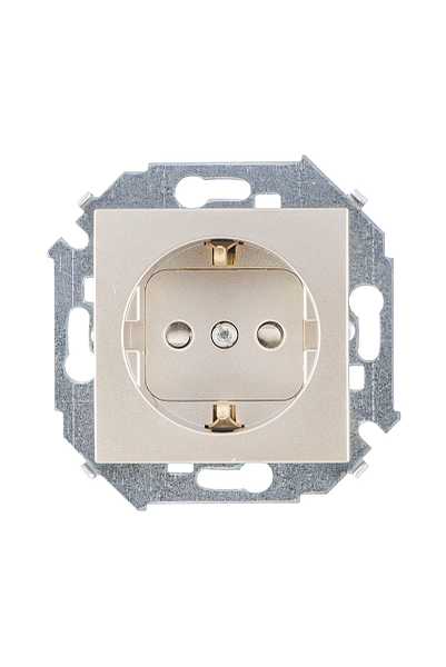 1591443-034 Розетка с заземлением Schuko со шторками, 16А 250В, винтовой зажим, шампань Simon 15