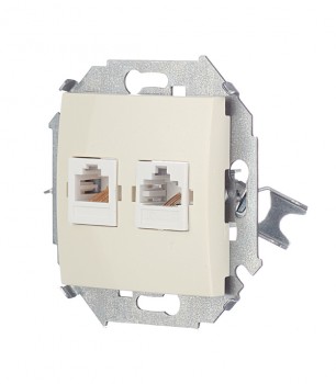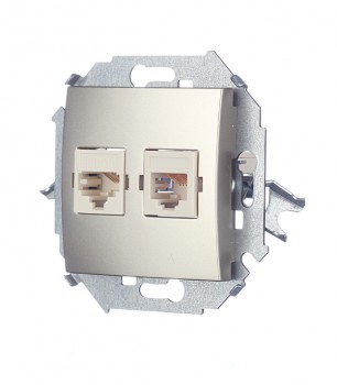 1591590-034 Розетка телефонная + компьютерная RJ11+RJ45 кат.5е, Systimax, шампань Simon 15