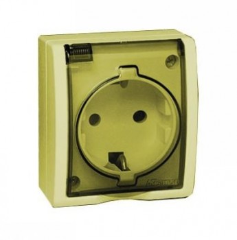 1594432-031 Розетка с заземлением Schuko со шторками, с крышкой полупрозрачной, IP54, 16А 250В, винтовой зажим, Simon 15 Aqua