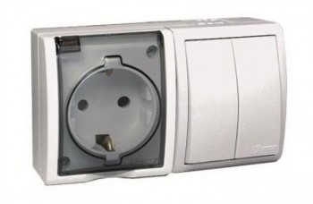 1594515-031 Блок, розетка с заземлением Schuko 16А 250В + выключатель двухклавишный 10А 250В, IP54, S15 Aqua, сл Simon 15 Aqua