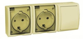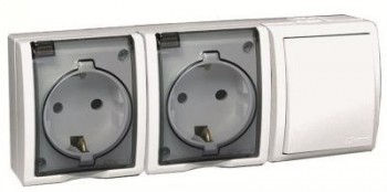 1594526-031 Блок, розетка двойная с заземлением Schuko 16А 250В + выключатель одноклавишный проходной 10А 250В, Simon 15 Aqua