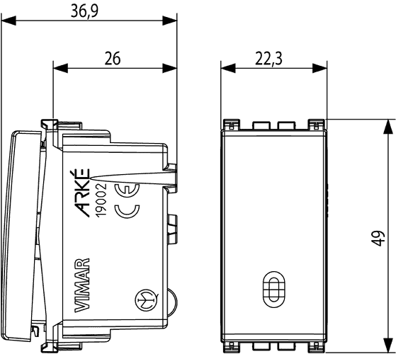 19002.B производится брендом Vimar, относящаяся к коллекции Arke Round.