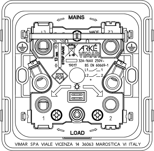 19017.WH – это продукция бренда Vimar, относящаяся к коллекции Arke Round.