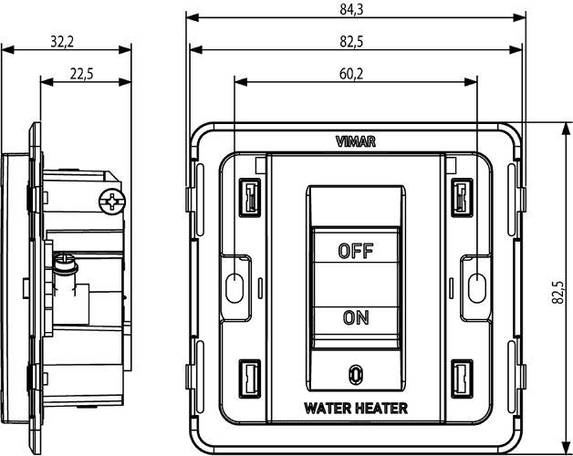 Выключатель 32 A, Water/Heate с подсветкой°, серый Vimar Arke 19017.WH