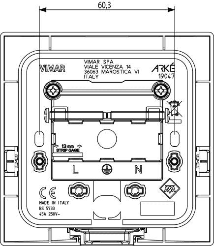 19047.B – это продукция бренда Vimar и принадлежит коллекции Arke Round.