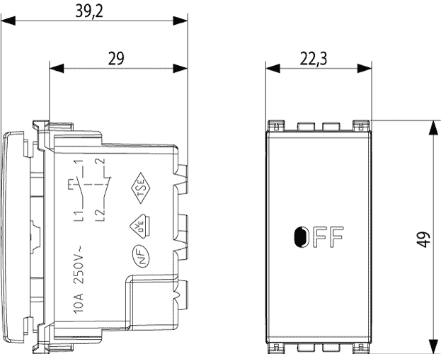 19056.33.M Дополнительные выключатели 250 В~ 10 А, НЗ+НР контакт, символ OFF. Metall Vimar Arke