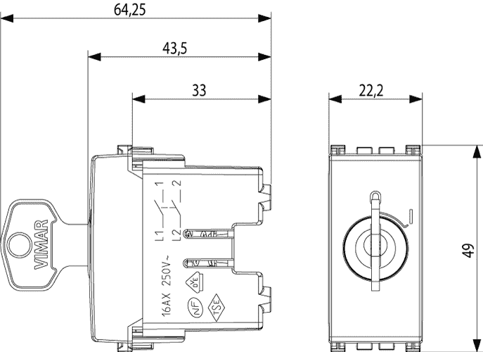 Механизмы Arke Round бренда из Италии Vimar отлично подойдут к уникальному стилю вашей квартиры или дома. Интернет-магазин Лампадия предлагает приобрести: 19083.M 16 АХ выключатель, ключ вынимается в обеих позициях. Metall Vimar Arke по цене 14 438 ₽ с доставкой по Москве или России.