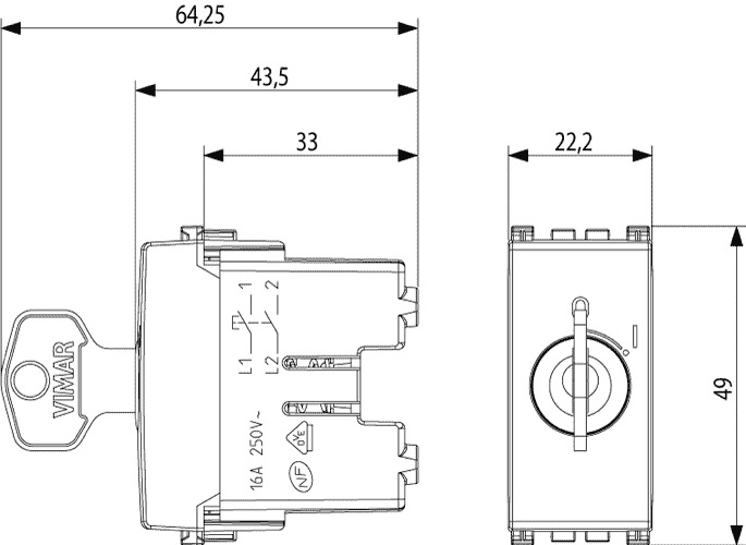 19086.M НР 16 А нажимная клавиша, ключ достается в положении О (выкл.) Metall Vimar Arke