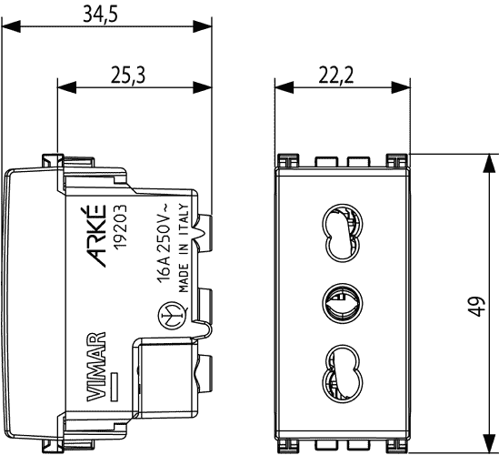 19203.M изготавливается брендом Vimar из коллекции Eikon Evo.