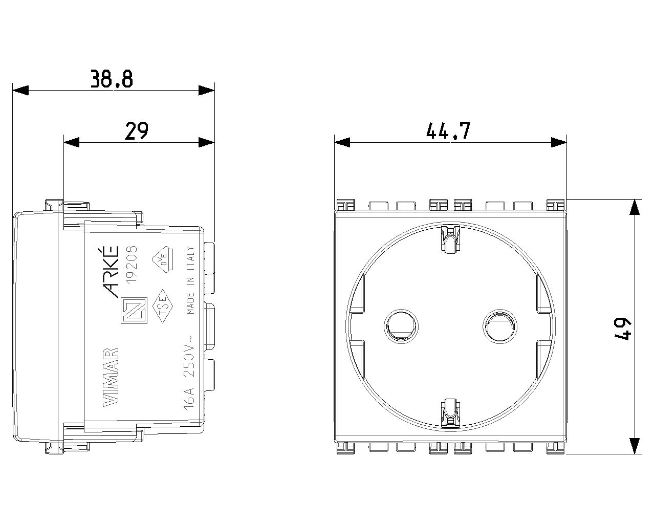 19208 производится брендом Vimar, относящаяся к коллекции Arke Round.