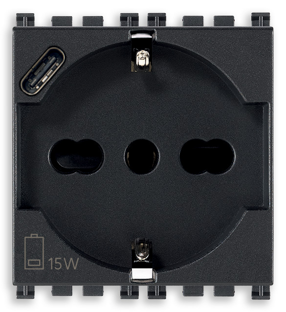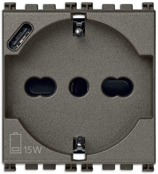 19210.USB Розетка 2P+T 16A универсальная + USB-C зарядка 5В 3А серая Vimar Arke