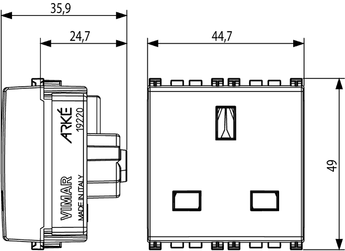 19220.B изготавливается брендом Vimar, относящаяся к коллекции Arke Round.