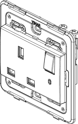 19221 Розетка британского стандарта 250 В~ (в комплекте с блоком сигнализации 00930) серая Arké Vimar