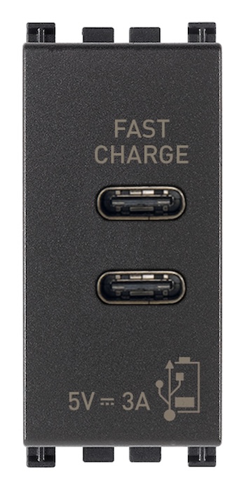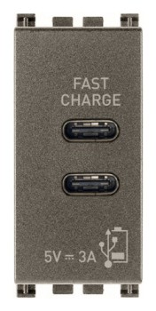 19292.CC Зарядка USB type-C+C, 3А с быстрой зарядкой Arke, USB type-C 5V, двойная Vimar Arke серый