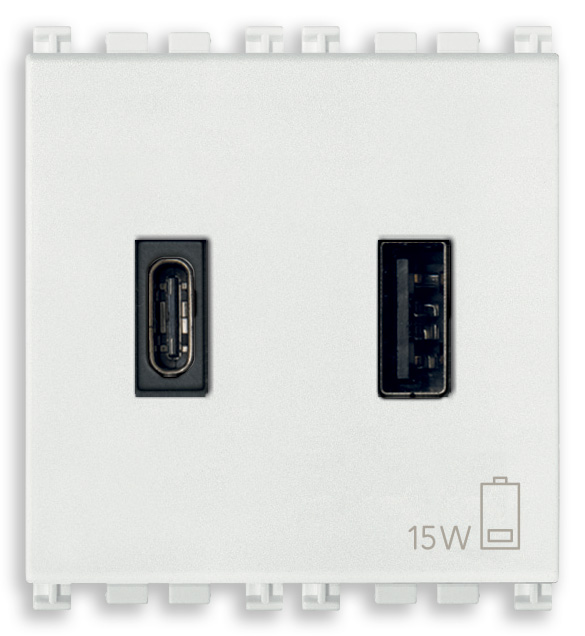 19295.AC.AB.B Зарядное устройство с разъемом USB A+C 5V 3A, 2мод., с антибактериальным покрытием Vimar Arke Белый