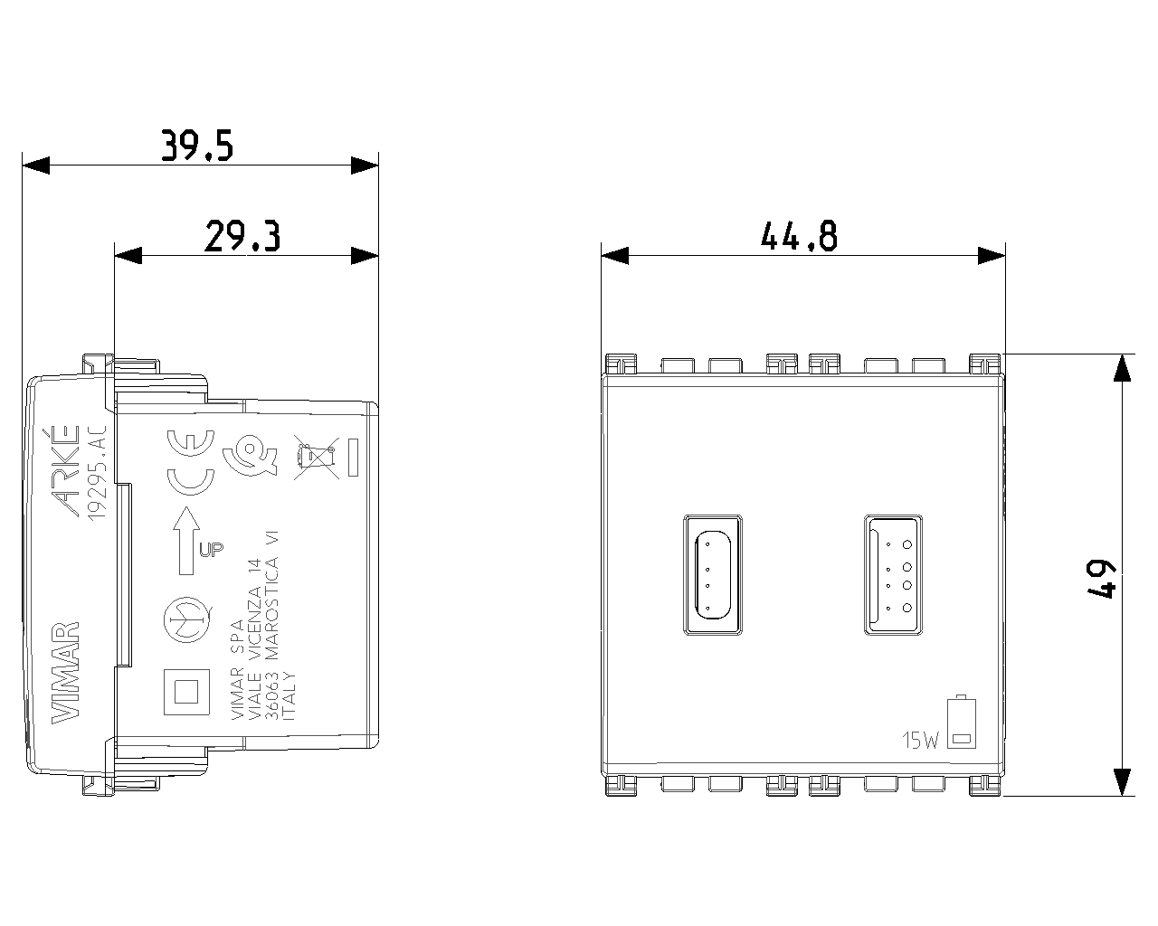 19295.AC.AB.B производится брендом Vimar и принадлежит коллекции Arke Round.