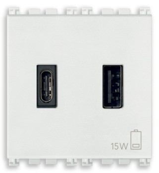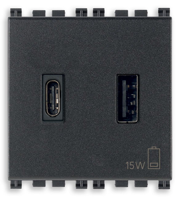 19295.AC.AB Зарядное устройство с разъемом USB A+C 5V 3A, 2мод., с антибактериальным покрытием Vimar Arke серый