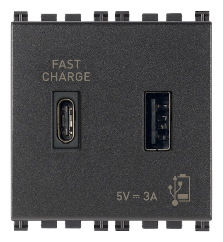 Зарядка USB type-A + C, 3А с быстрой зарядкой Arke, USB type-C 5V, USB type-A 5V, двойная, серый Vimar Arke 19295.AC