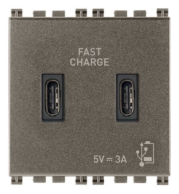 19295.CC.M Зарядка USB type-C+C, 3А с быстрой зарядкой Arke, USB type-C 5V, двойная Vimar Arke Металл