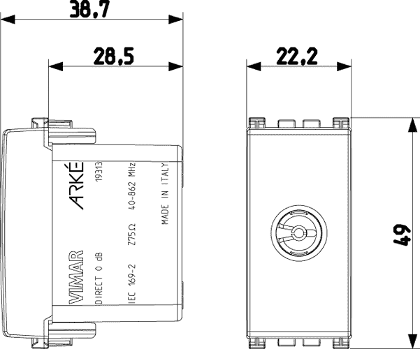 Механизмы Arke Round бренда из Италии Vimar прекрасно впишутся в интерьер вашей квартиры или дома. Интернет-магазин Лампадия предлагает: 19313.M Розетка tv простая 40-862mhz, metall Vimar Arke по цене 3 253 ₽ с доставкой по Москве или России.