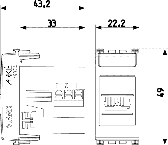 19324 Телефонная розетка по израильскому стандарту серая Vimar Arke