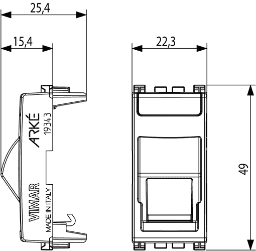 19343.K Наклонный адаптер для розетки RJ45 Keystone. серый Vimar Arke