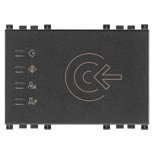 19457 Устройство чтения карттранспондеров Vimar Arke серый для установки вне помещения, стандарт KNX, 2 релейных нормально разомкну- тых выхода 4 A 24 В~, 2 входа, 12-24 В~ 50/60 Гц и 12-24 В пост. тока (SELV) - 3 модуля