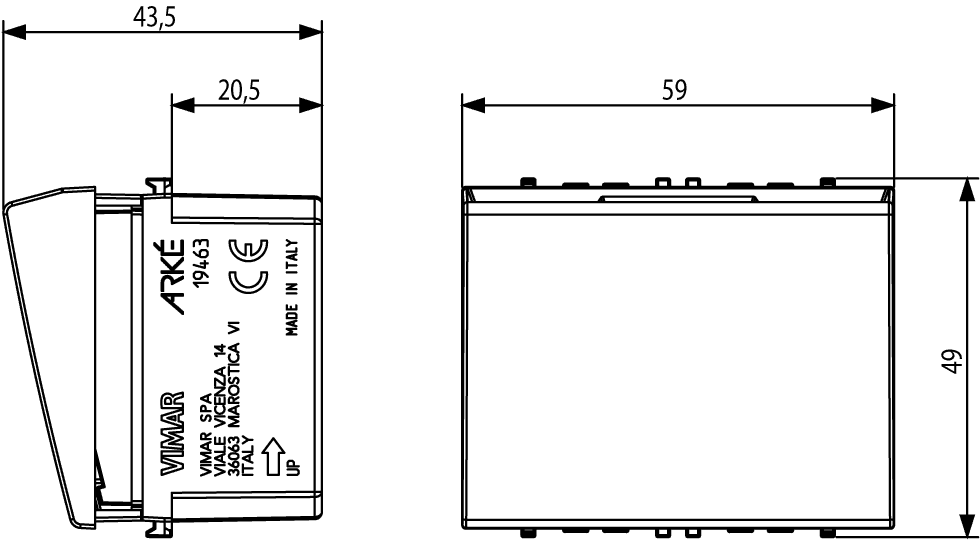 19463.M Электронный выключатель Vimar Arke металл вертикальное гнездо, 120-230 В~ 50/60 Гц - 2 модуля